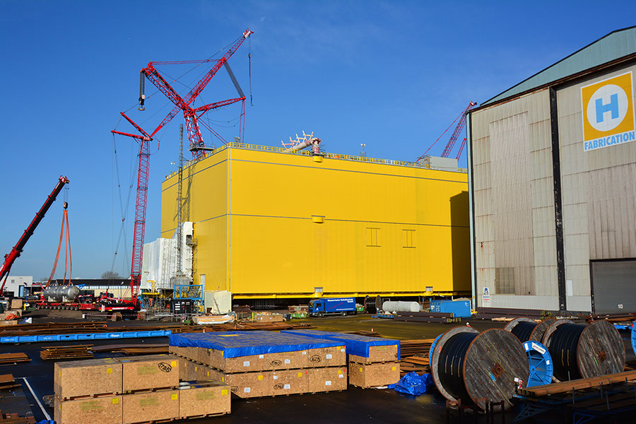Verkabelung der Offshore-Plattform HelWin beta in Zwijndrecht, Niederlande